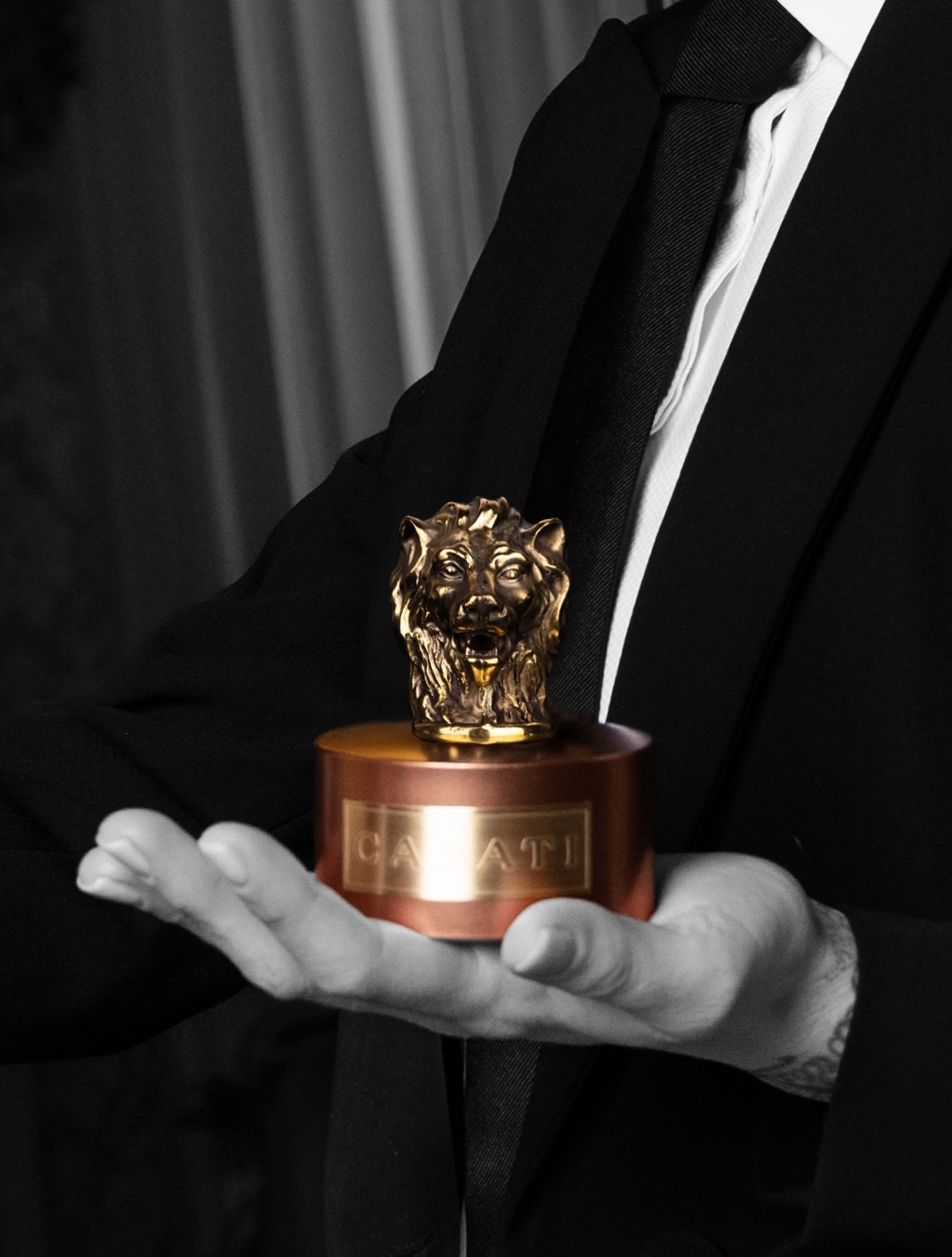 Il tappo scultura, in dialogo con il logo è stato disegnato e creato da artigiani italiani in metallo patinato in galvanica d’ottone dorato può essere conservato e arricchire la collezione dei profumi Casati.